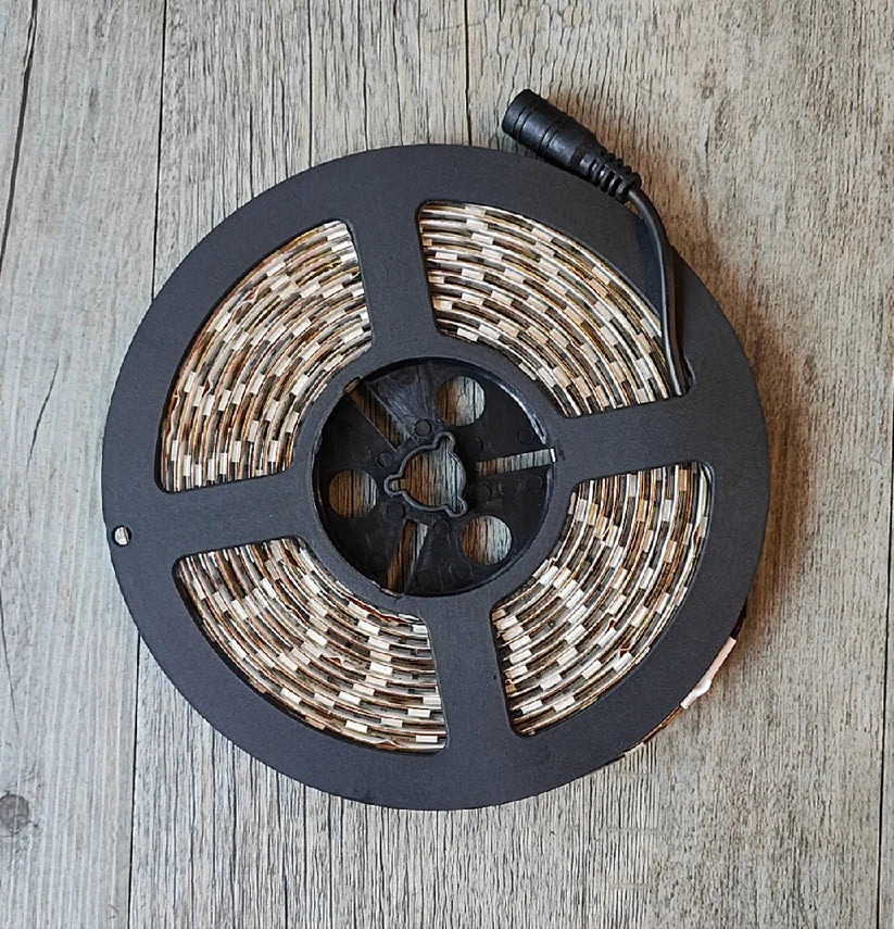 Brighten up your space with this 12v DC 5m LED light strip roll featuring 300 x 5050 LED chips in a soft cool white color. Weatherproof design makes it perfect for indoor or outdoor use. Color: Cool White 10watt per meter 60 Lumens per Meter 60 LEDs per meter
