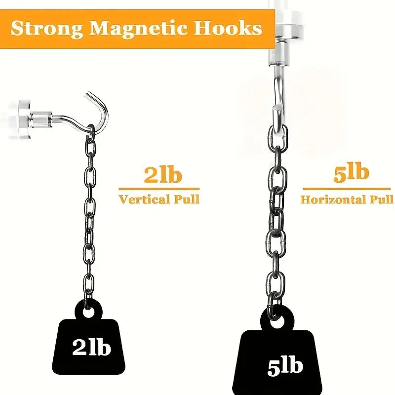 These 20 heavy-duty magnetic hooks feature powerful neodymium magnets capable of holding up to 11.34KG each. Ideal for secure organization, they attach easily to metal surfaces such as refrigerators, whiteboards, roller coasters, and workplace equipment. Their strong grip supports a variety of household and office items, helping to maximize space while keeping essentials within reach. Durable and versatile, these hooks provide a reliable solution for efficient storage and display needs.