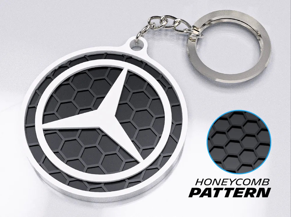 "Mercedes Badge" Honeycomb 3D Printed Key Chain