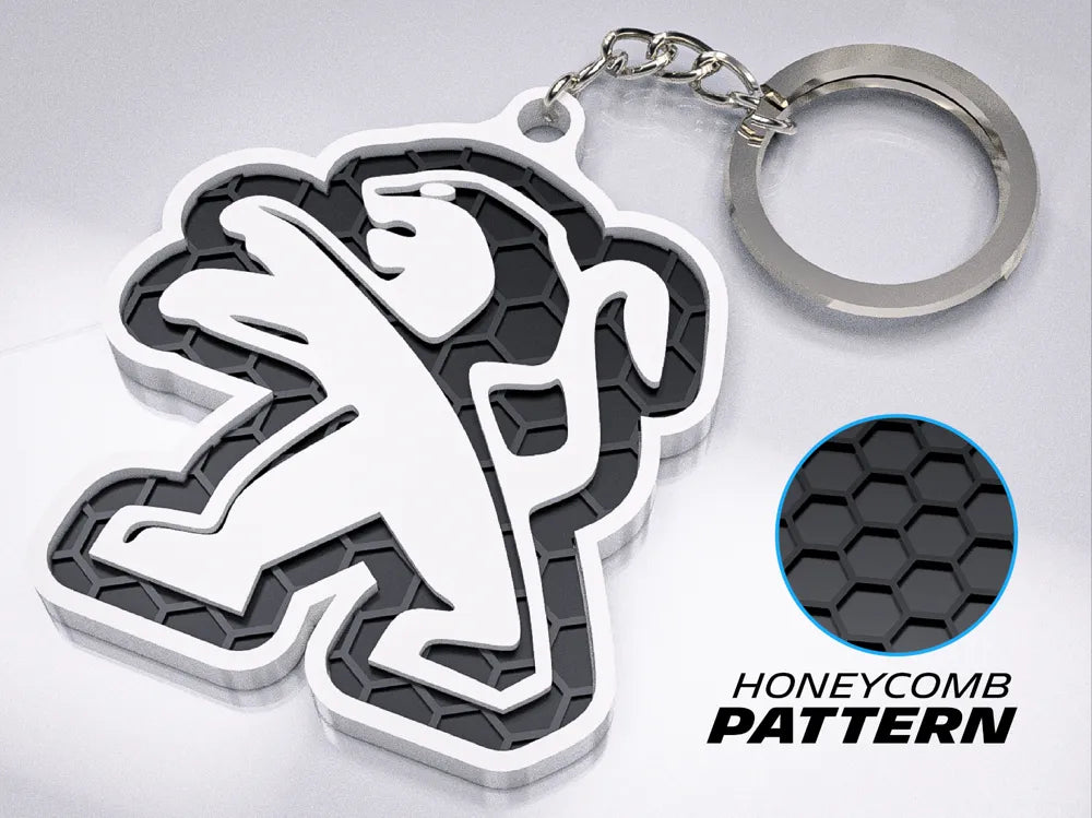 "Peugeot" Honeycomb 3D Printed Key Chain