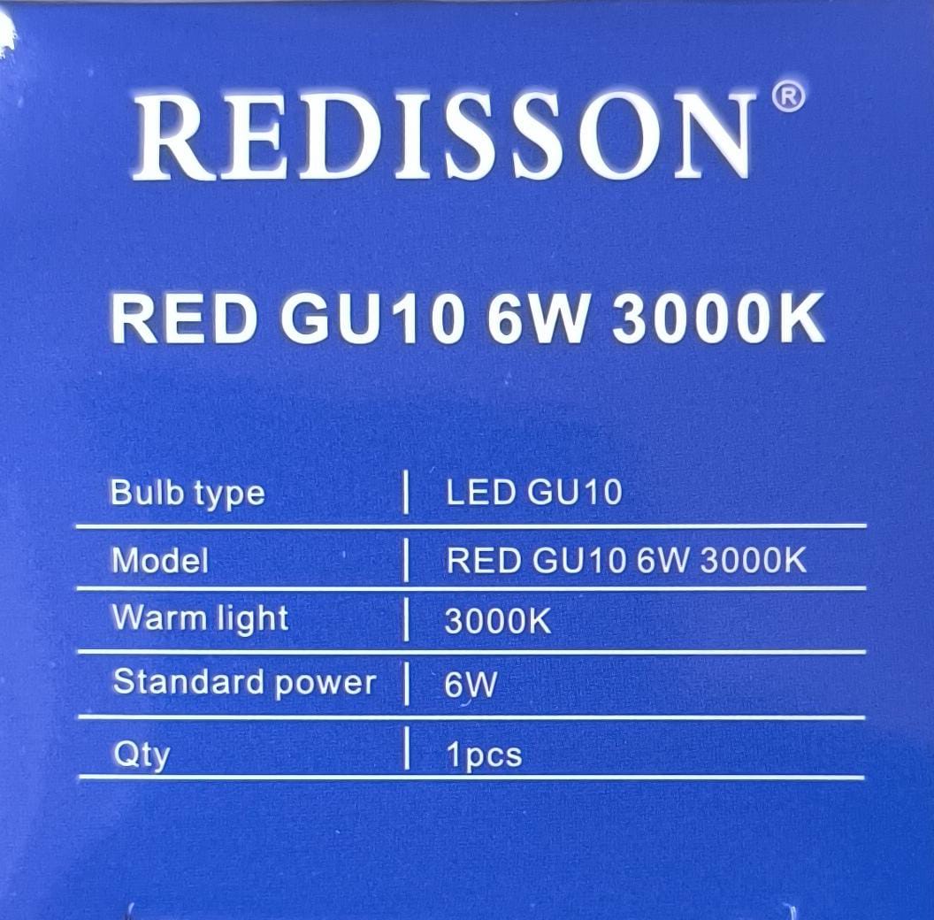 REDISSON GU10 6Watt 240vAC 3000k (Warm White) LED Downlight Bulb - Versatile Lighting Solution