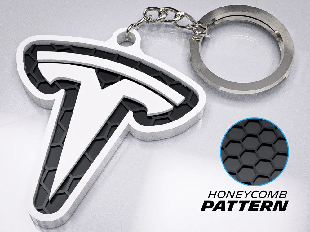 "Tesla Badge" Honeycomb 3D Printed Key Chain