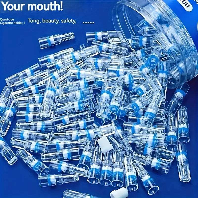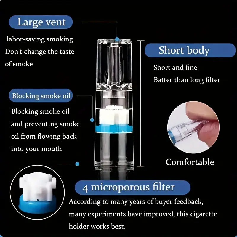 100pcs Disposable Tar Reducing Smoking Filter Tips with Holder - Reduces Tar and Nicotine, Easy to Use, Reusable Mouthpieces.