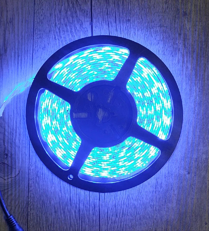 Brighten up your space with this 12v DC 5m LED light strip roll featuring 300 x 5050 LED chips in a soft blue color. Weatherproof design makes it perfect for indoor or outdoor use. Color: Blue 10watt per meter 60 Lumens per Meter 60 LEDs per meter