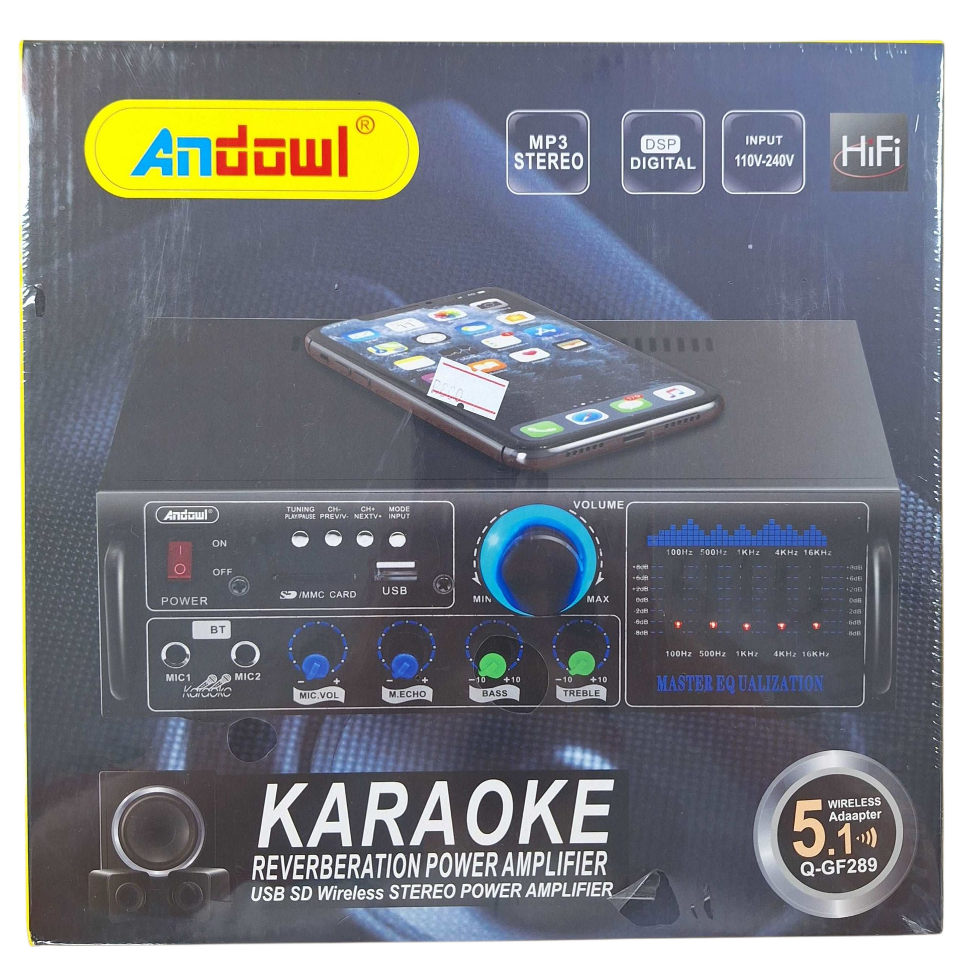 Introducing the Andowl Karaoke Reverberation Power Amplifier - the ultimate amplifier for your karaoke sessions. Elevate your singing experience with this powerful and versatile device. With its advanced reverberation technology, you can add a professional touch to your vocals and create a captivating performance. Whether you're hosting a karaoke night or practicing your singing skills at home, this amplifier is a must-have. Get ready to impress your audience and take your karaoke game to the next level with the Andowl Karaoke Reverberation Power Amplifier.