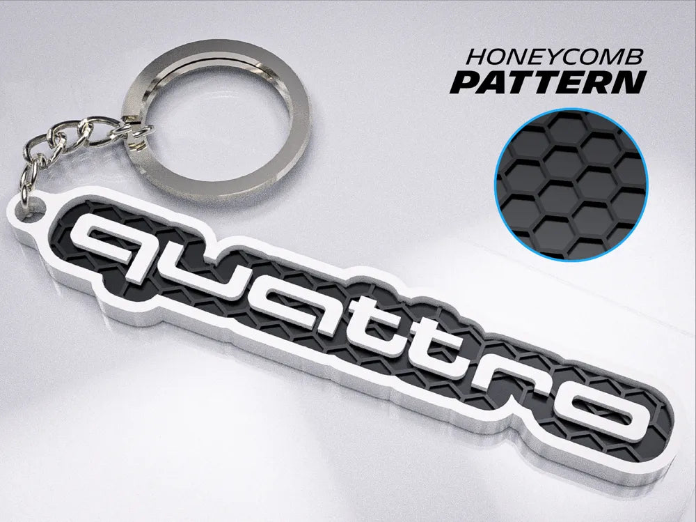 "AUDI Quattro" 3D Printed Honeycomb Key Chain