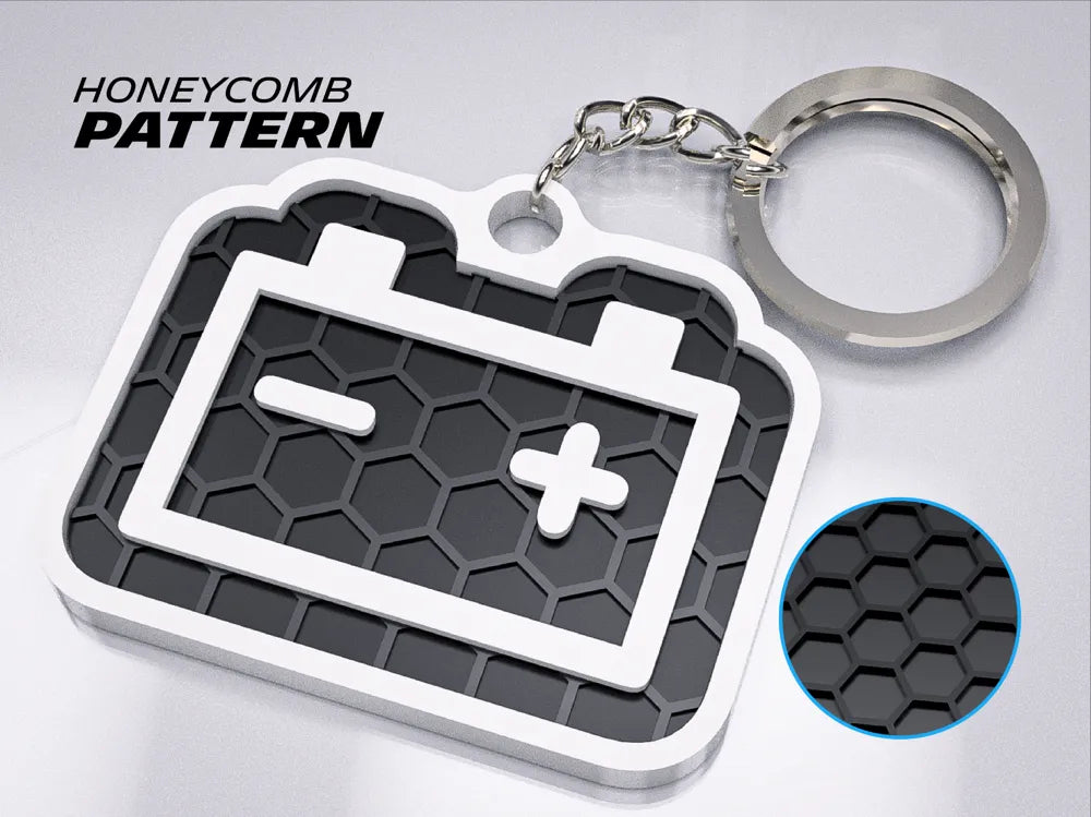 "Battery Charge Icon" 3D Printed Honeycomb Key Chain