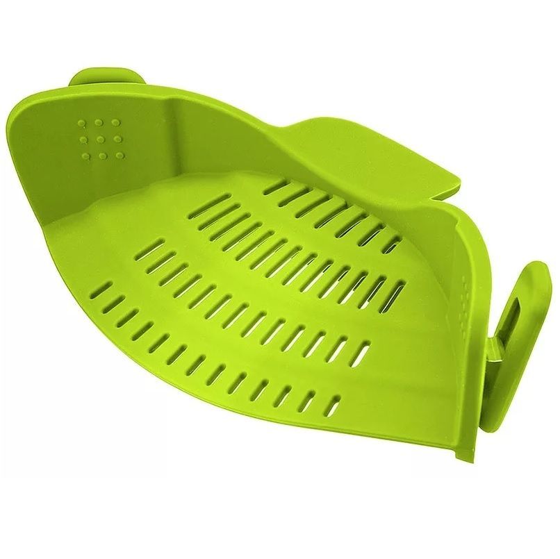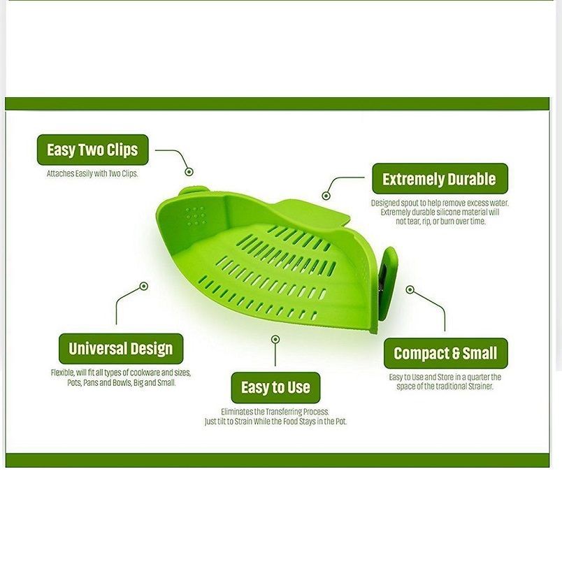 The ABERZEY Adjustable Clip-On Pot Strainer is designed for convenient and safe food drainage. Made from durable, heat-resistant plastic, it securely clips onto pots, pans, and bowls, enabling effortless draining of noodles, pasta, vegetables, and fruits. Its adjustable size fits various cookware, enhancing kitchen efficiency while minimizing spills. This reliable tool simplifies cooking cleanup and ensures precise strain control with minimal effort.