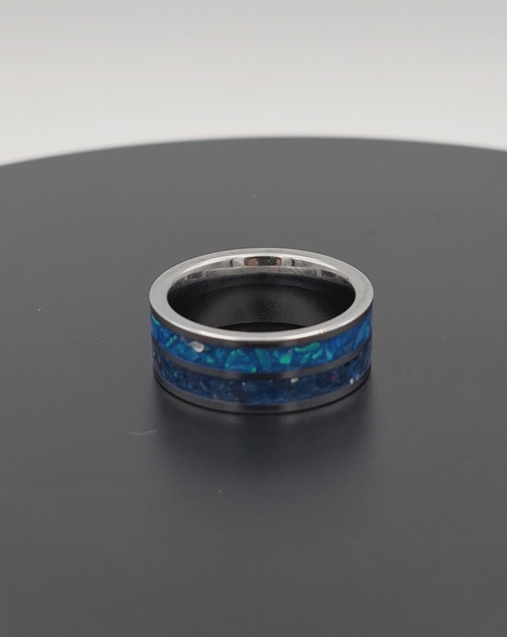 Custom Handmade 2 Core Stainless Steel 8mm Ring With Crushed Opals - Size 7