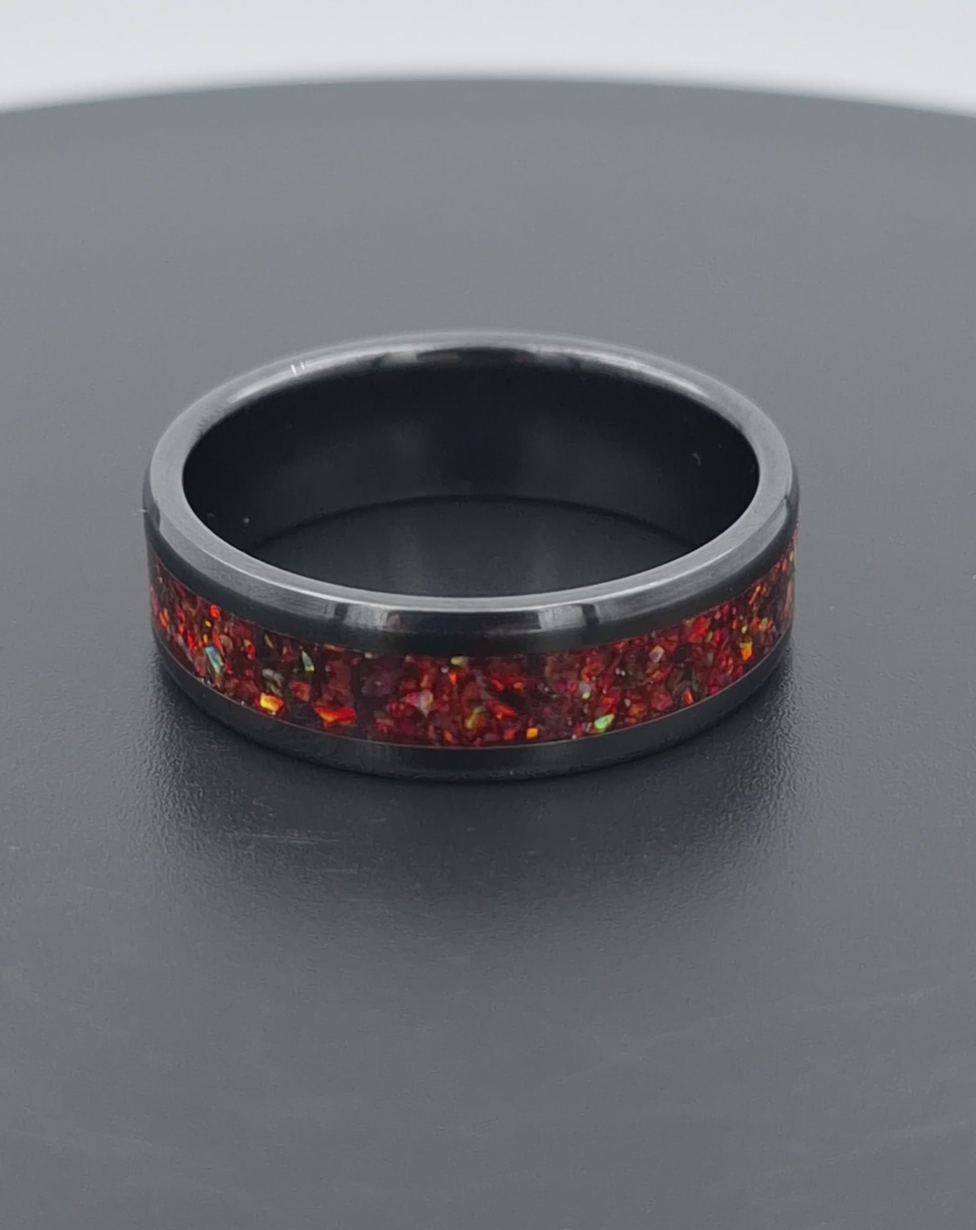 Custom Handmade Black Ceramic 8mm Ring With Crushed Opals - Size 15