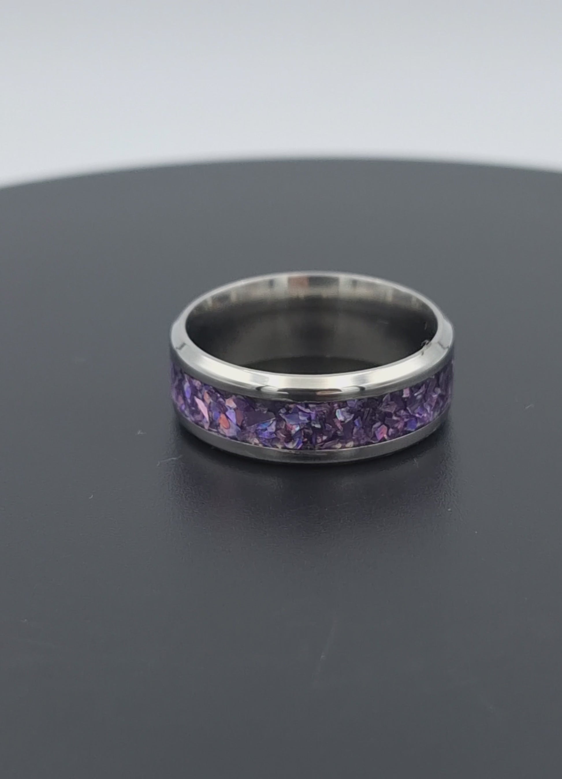 Custom Handmade Stainless Steel 8mm Ring With Crushed Opals - Size 10