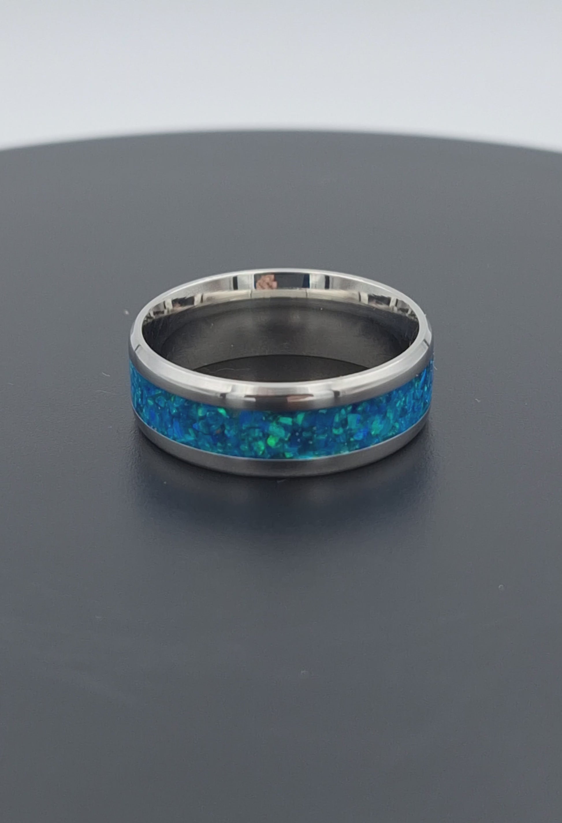 Custom Handmade Stainless Steel 8mm Ring With Crushed Opals - Size 12