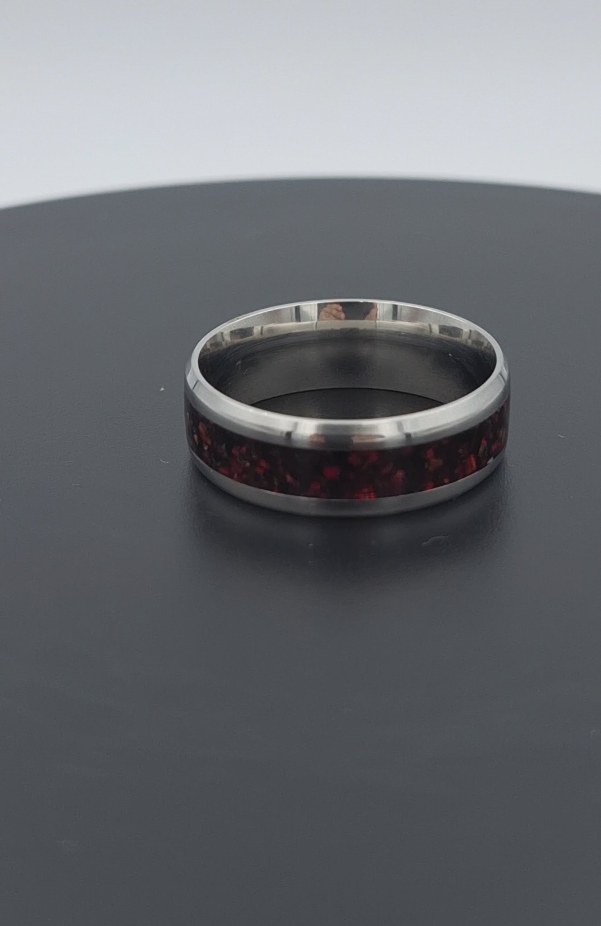 Custom Handmade Stainless Steel 8mm Ring With Crushed Opals - Size 13