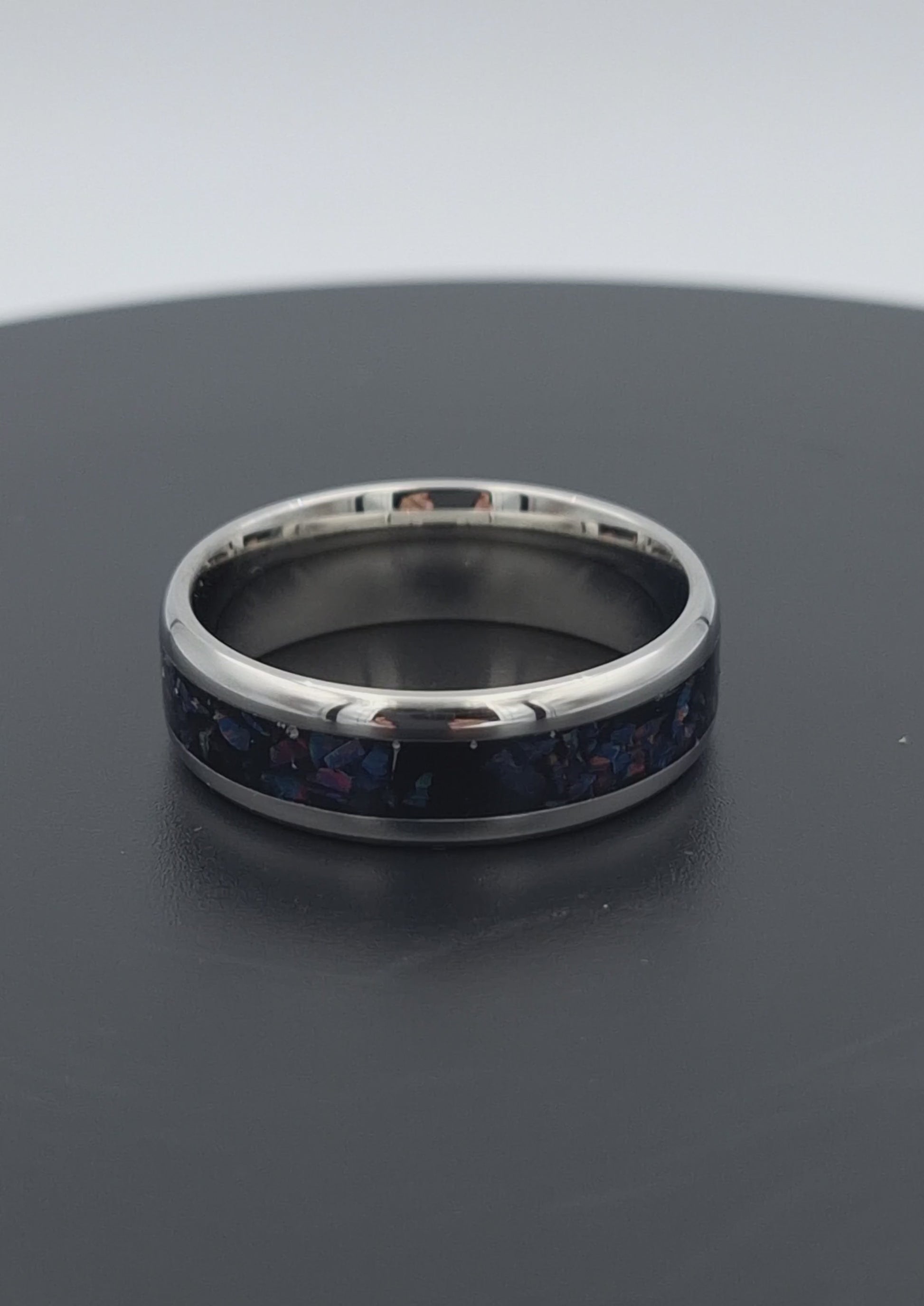 Custom Handmade Stainless Steel 8mm Ring With Crushed Opals - Size 15