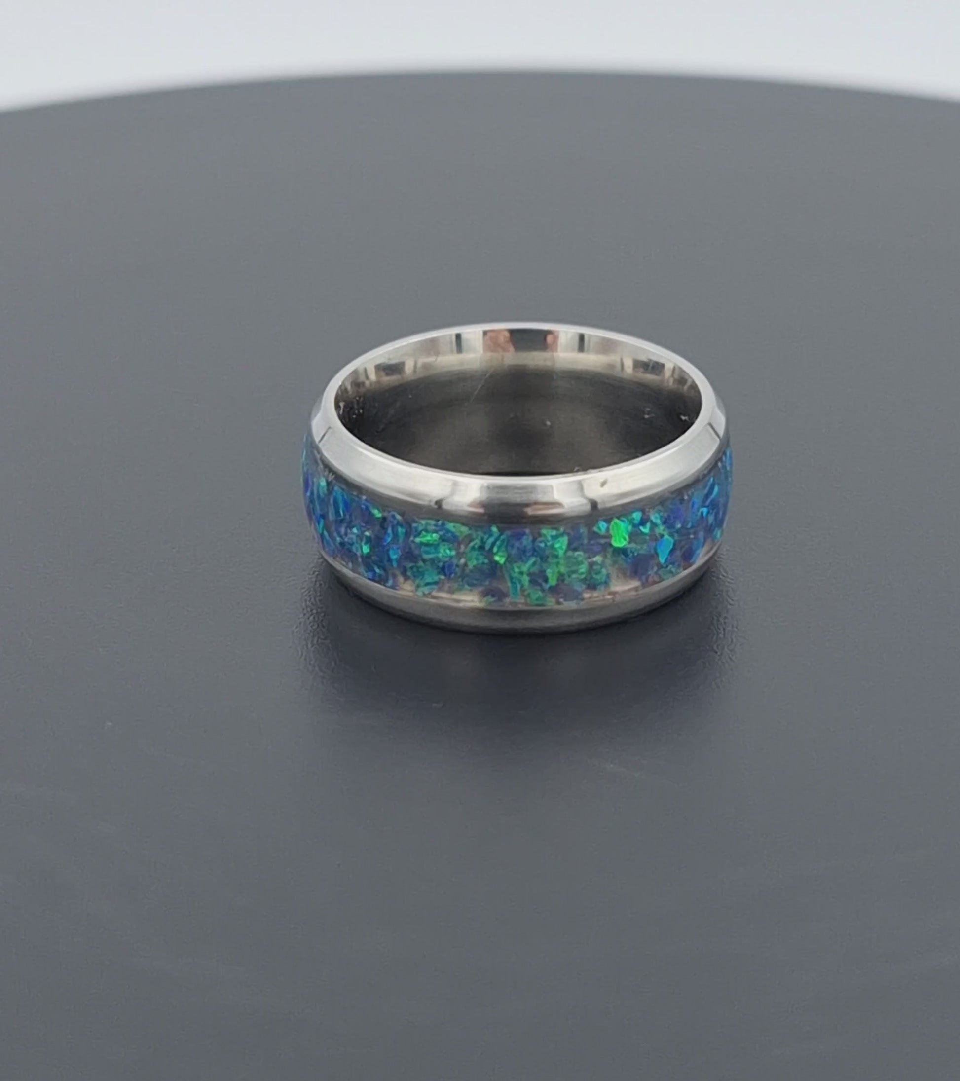 Custom Handmade Stainless Steel 8mm Ring With Crushed Opals - Size 5