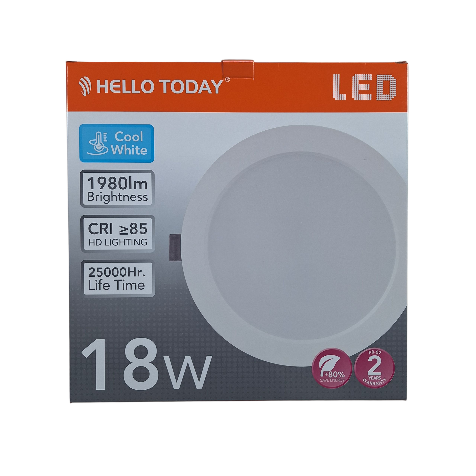 Light up your space with the Hello Today LED Panel Light. With 18 watts of power and a cool white color, this round panel light is perfect for providing bright and efficient lighting. Say goodbye to high energy costs and hello to a brighter, more eco-friendly tomorrow.