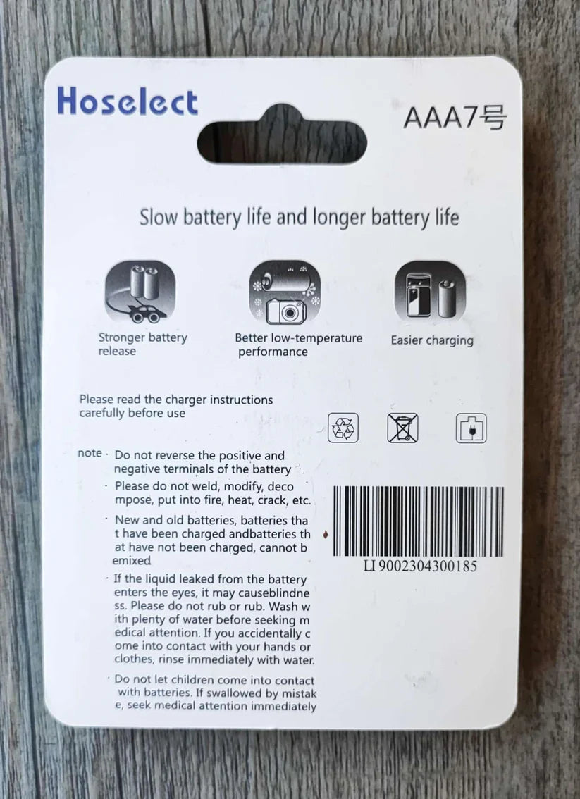 Hoselect AAA 1.2v 400mah Lithium-Ion Rechargeable Battery 4Pack