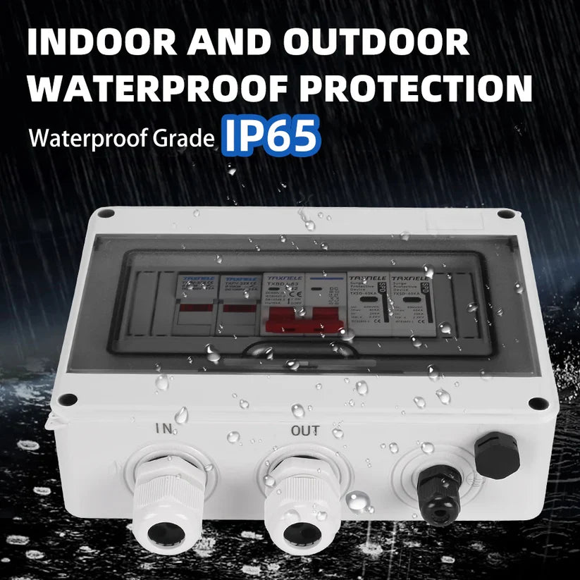 This Solar Photovoltaic PV DC Combiner Box offers reliable surge and lightning protection for PV systems, with a single input and output designed for up to 600V DC. Engineered to safeguard your solar array's electrical components, it ensures system stability by preventing damage from voltage spikes. Ideal for enhancing the longevity and safety of your solar installation while maintaining efficient energy flow.
