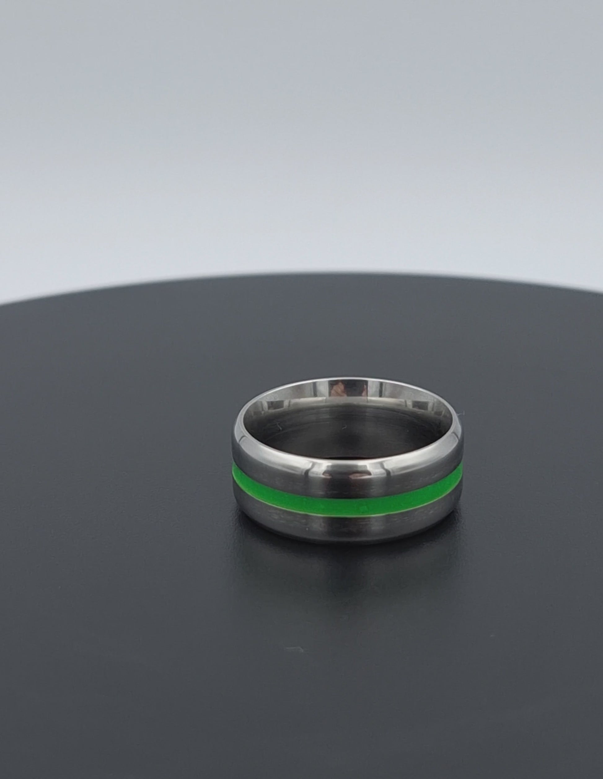 Introducing our Stainless Steel 8mm Ring with a vibrant Green Stripe – the perfect accessory to elevate your style. Crafted with precision and durability in mind, this ring is made from high-quality stainless steel that will stand the test of time. The 8mm width adds a bold touch, while the eye-catching green stripe adds a pop of colour. Available in Size 7, this ring is designed to fit comfortably and effortlessly on your finger. Whether you're dressing up for a special occasion or adding a touch of elegance to your everyday look, this Stainless Steel Ring is a must-have addition to your jewelry collection.
