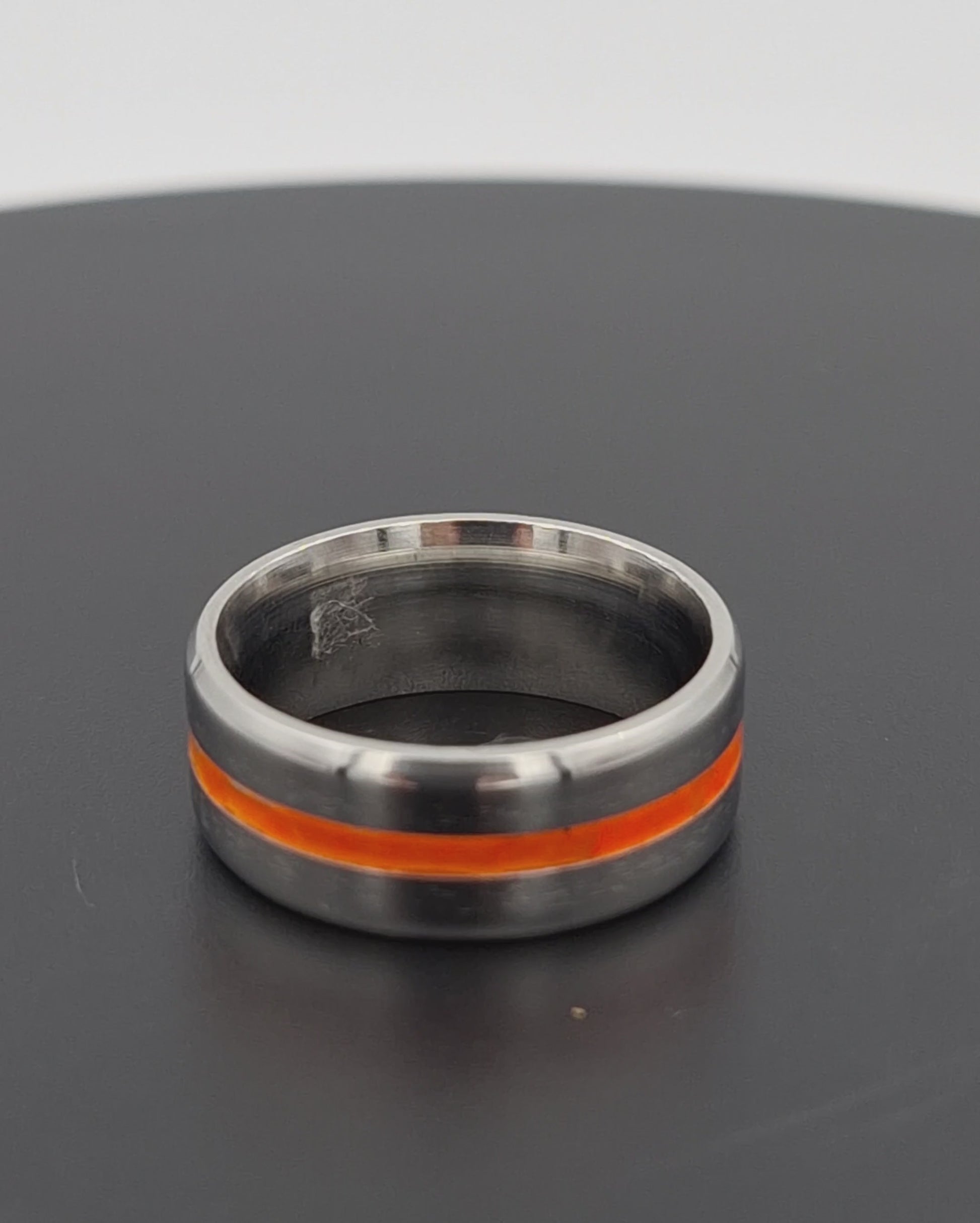 Stainless Steel 8mm Ring With Orange Stripe - Size 8