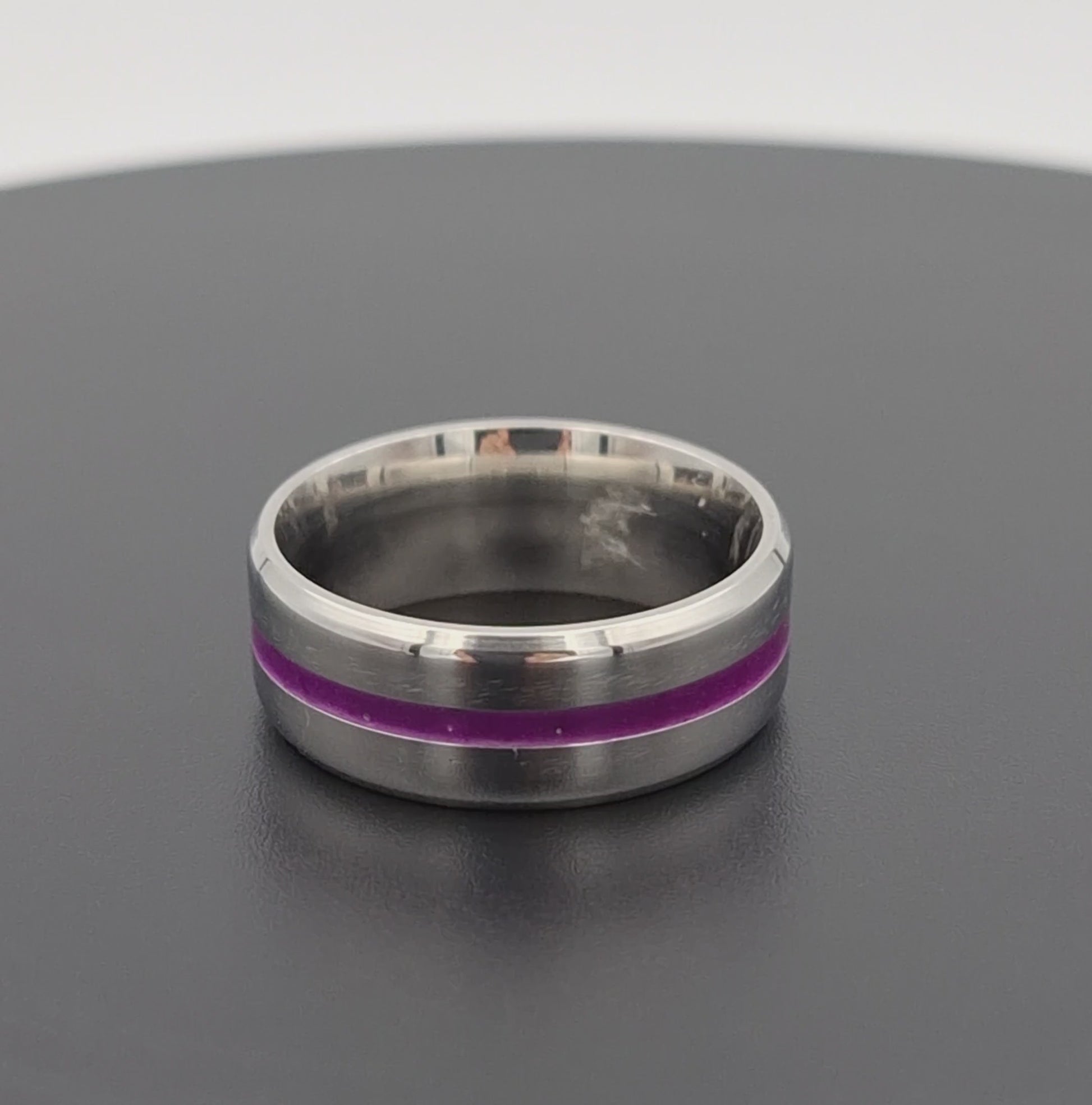 Stainless Steel 8mm Ring With Purple Stripe - Size 9