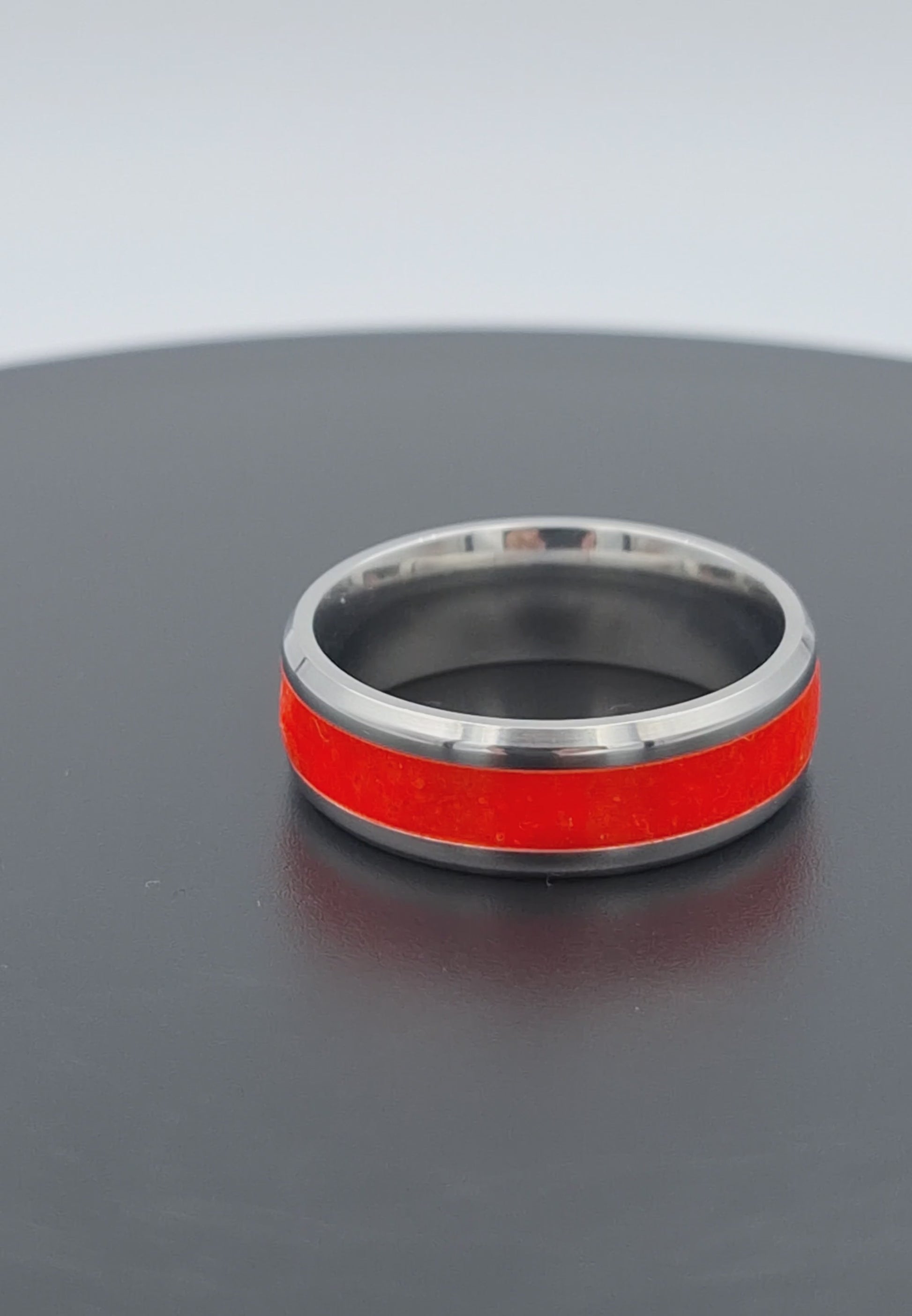 Introducing our Stainless Steel 8mm Ring with a Bold Orange Stripe - Size 9. This striking piece of jewellery combines modern style with durability. Crafted from high-quality stainless steel, this ring features a thick orange stripe that adds a pop of colour to any outfit. The 8mm width gives it a substantial presence on your finger, making it a statement piece that is sure to turn heads. Whether you're dressing up for a special occasion or adding a touch of flair to your everyday look, this ring is the perfect choice. Upgrade your jewellery collection with this captivating piece today!
