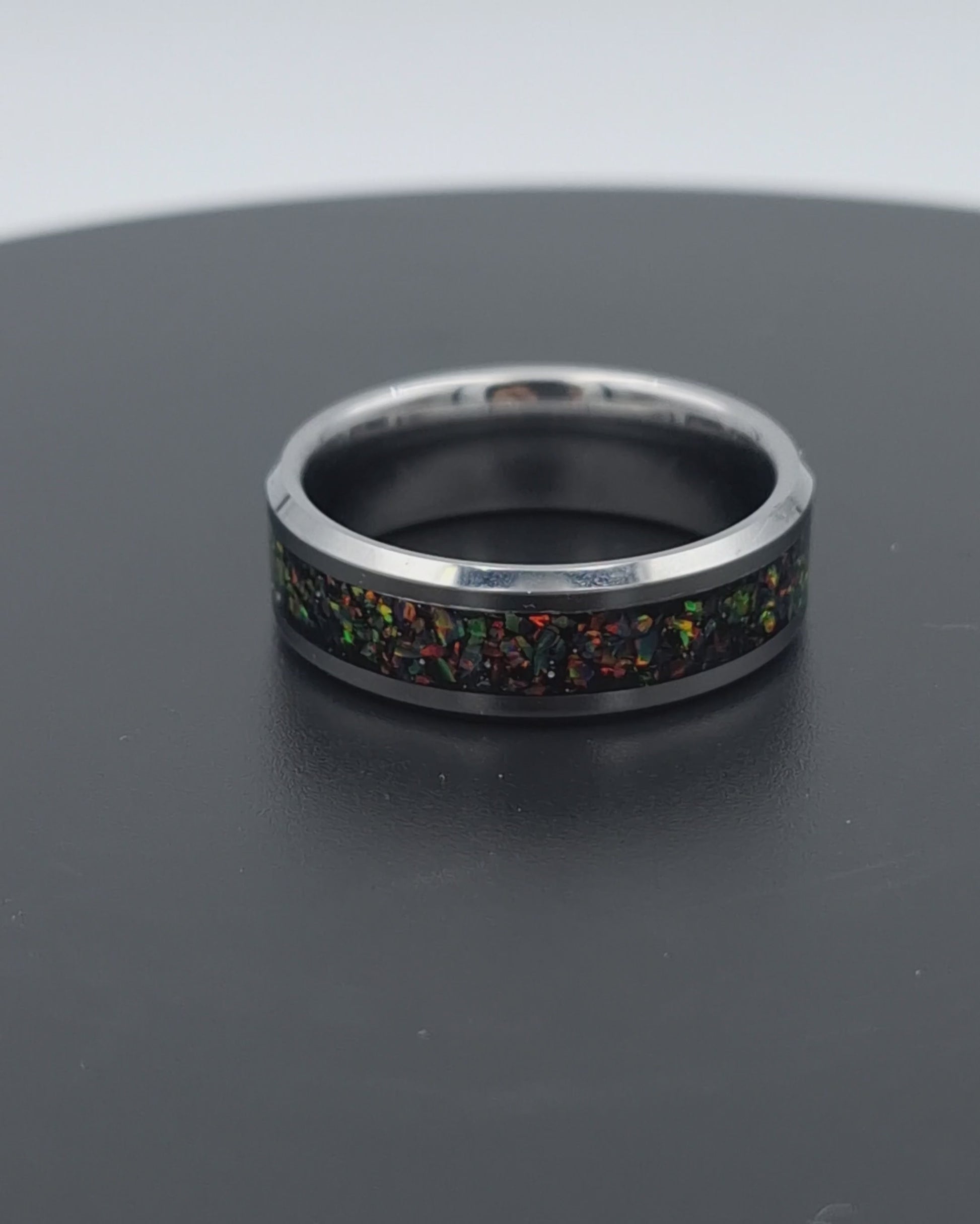Tungsten Metal 8mm Ring With Crushed Opals - Size 13