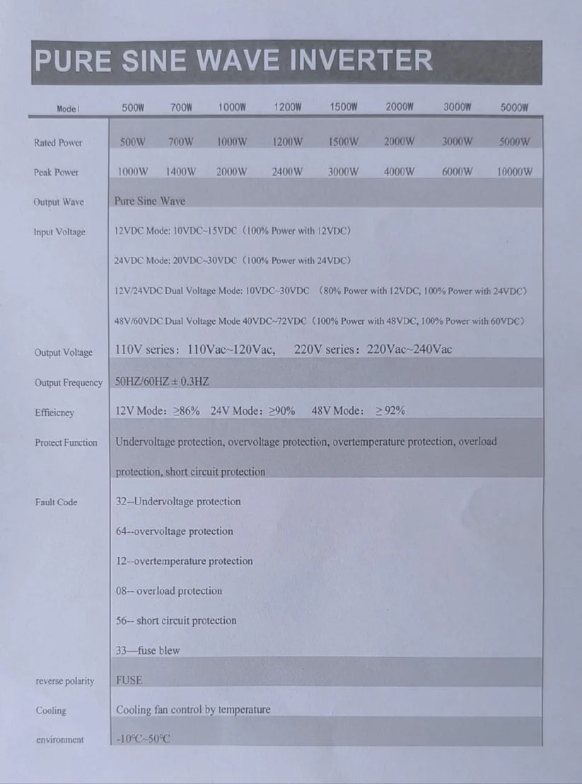 Package Contents: 1x Devel 1200w 12v Inverter 1x User Manual