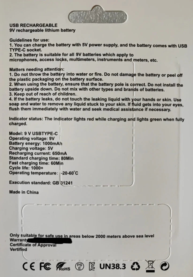 Hoselect 9v 1000mah Li-Ion Rechargeable Battery
